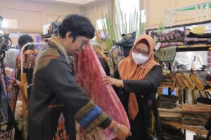 Untuk itu, wabup mengungkapkan target produksi tenun kedepannya akan berorientasi pada eco fashion. Dimana banyak para desainer lokal dan peminat asal timur tengah yang menginginkan kain anti sinar uv.