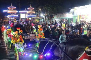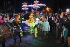 Sepanjang perjalanan pawai, Bupati Yani tak henti-hentinya melempar senyum dan membalas sapaan dari masyarakat yang berjubel. Semua tampak larut bersama-sama menikmati kemeriahan pawai.