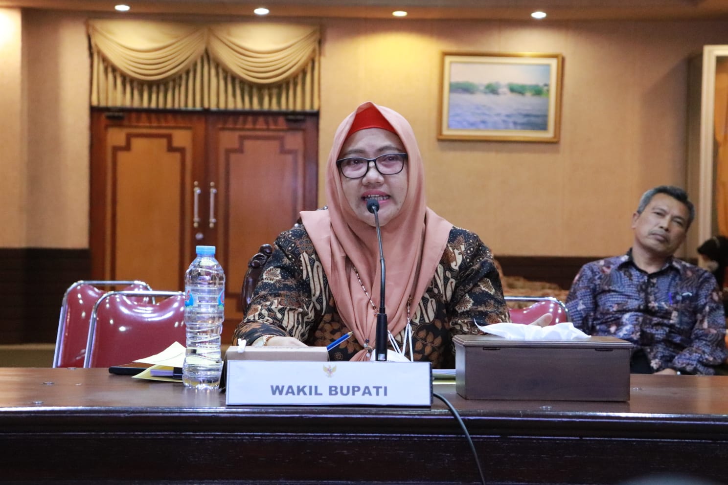 Saat koordinasi dengan UGM, Bu Min ditemani oleh Sekretaris Daerah Kabupaten Gresik Ahmad Washil Miftahul Rachman dan Kepala Bappeda Kabupaten Gresik Misbahul Munir.(TLH/DOD).