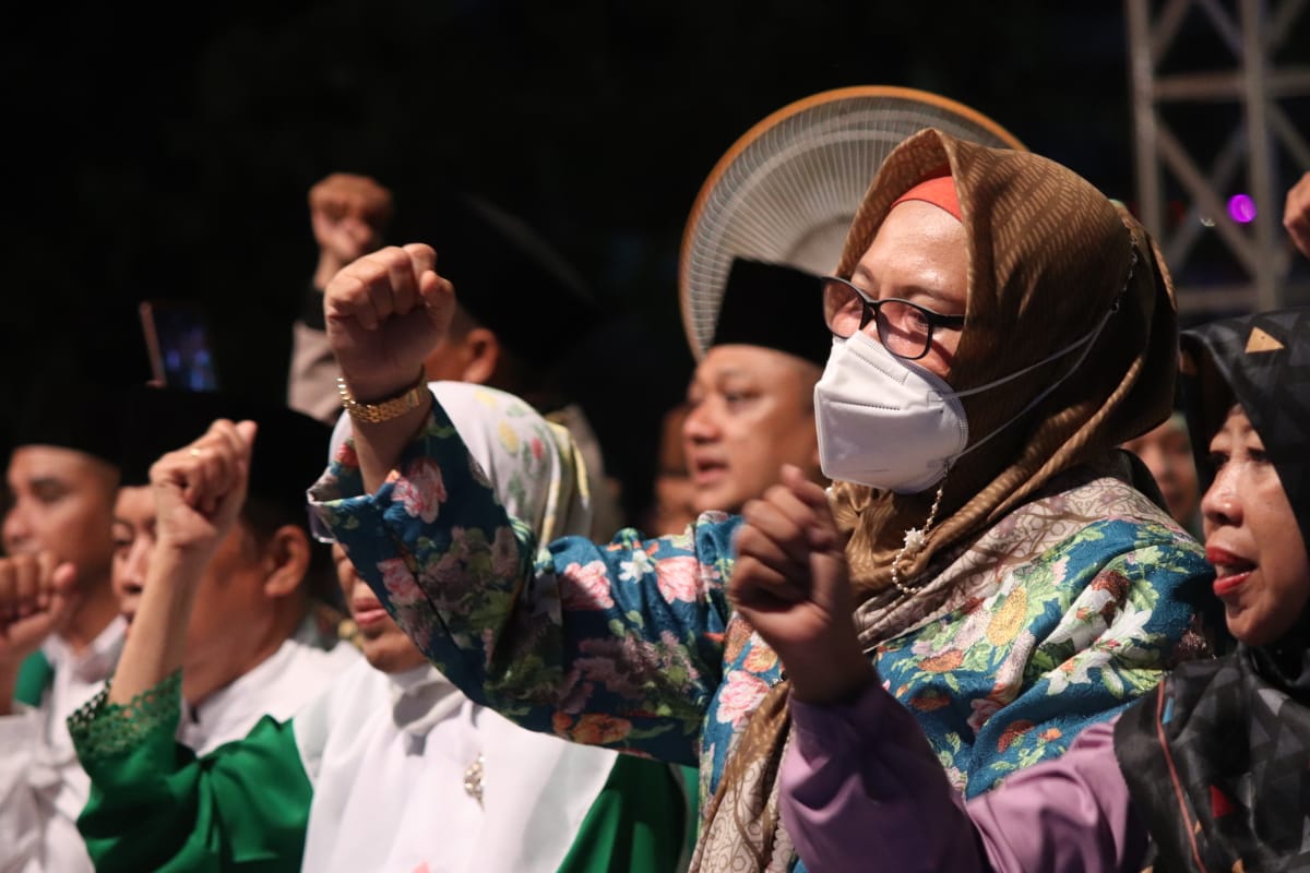 Penutupan pasar rakyat, dan Ansor Gresik bersholawat, sambut Hari Santri Nasional (HSN) dan satu abad NU, dimeriahkan oleh kehadiran Habib Hanif Al Haddad, diiringi oleh Hadrah asal Pondok Pesantren (Ponpes) Ihyaul Ulum Dukun.(DVD/DOD).