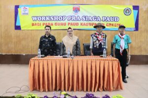 Hal itu disampaikan Wakil Bupati Gresik Dra. Hj. Aminatun Habibah, M.Pd sekaligus Ketua Kwartir Cabang (Kwarcab) Gerakan Pramuka Kabupaten Gresik dalam sambutannya. Saat membuka Workshop Pra Siaga bagi para guru PAUD Se-Kabupaten Gresik.